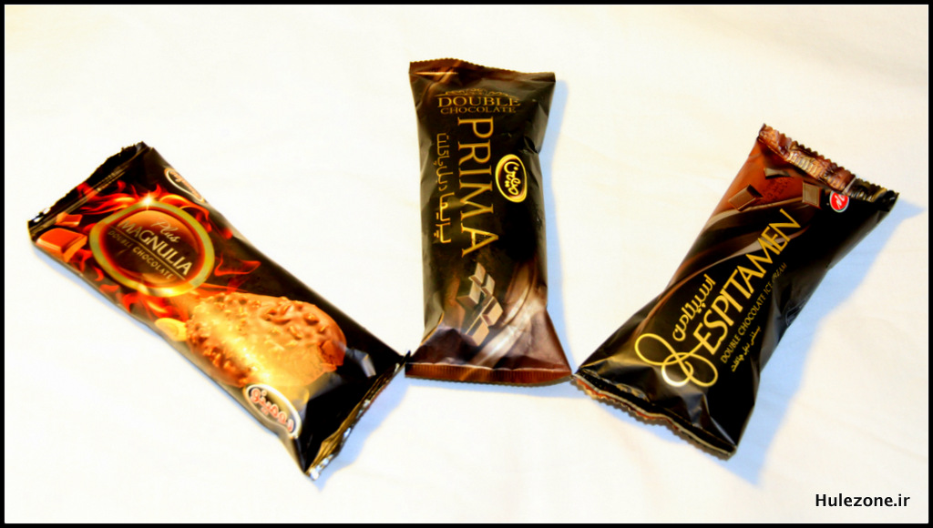 «نه فقط در ایران بلکه در تمام دنیا بسته بندی بستنیهای چوبی لوکس با یک استایل طراحی میشن ، روی این بستهها برخلاف بستنیهای ارزانتراز عکس محصول خبری نیست و برند یا ساببرند در اندازه ای بزرگ روی بسته قرار میگیره- مثل شرکتهای آلگیدا و نستله – و همچنین در تمام دنیا طعم دبلچاکلت و یا شکلاتهای تلخ رو با رنگهای تیره نشون میدن هم در شکلات و کیک و هم در بستنی و این باعث میشه که همه بسته بندیهای شکلاتهای لوکس تلخ و بستنیهای دبلچاکلت و یا با شکلات تلخ به هم شبیه باشند.»