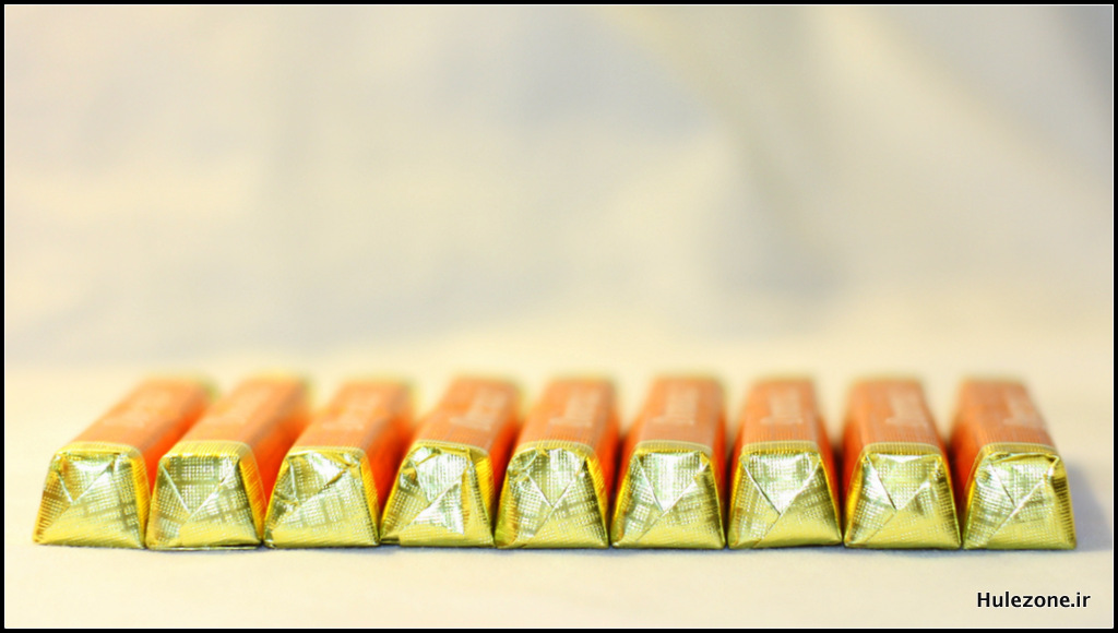 وقتی این بسته رو باز میکنی ۹تا دونه شکلات توشه (لازمه باز راجع به فراماسونی بودن هرچیزی تو هر نقطهای از دنیا، مگر اینکه عکسش ثابت بشه حرف بزنم؟ 😀 ) که خوب اونا ظاهرشون یکم آبرومندانهتره. شکلاتهایی فندقی که به صورت طولی (با فرض اینکه مثل دوم ابتدایی ضلع بزرگتر رو طول و کوچیکتر رو عرض بگیریم، نه اینکه براساس محور مختصات خاصی طول و عرض رو در نظر بگیریم)سه تا شیار و به صورت عرضی یه شیار وسطش داره که احتمالا واسه نصف کردنه مثلا.